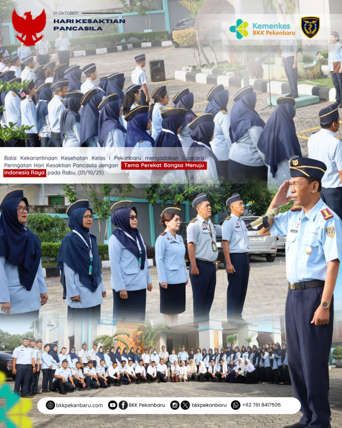 Pekanbaru, 01 Oktober 2025 - Dengan Semangat Pancasila Perekat Bangsa, Balai Kekarantinaan Kesehatan Kelas I Pekanbaru Siap Mengawal Kesehatan di Pintu Negara.