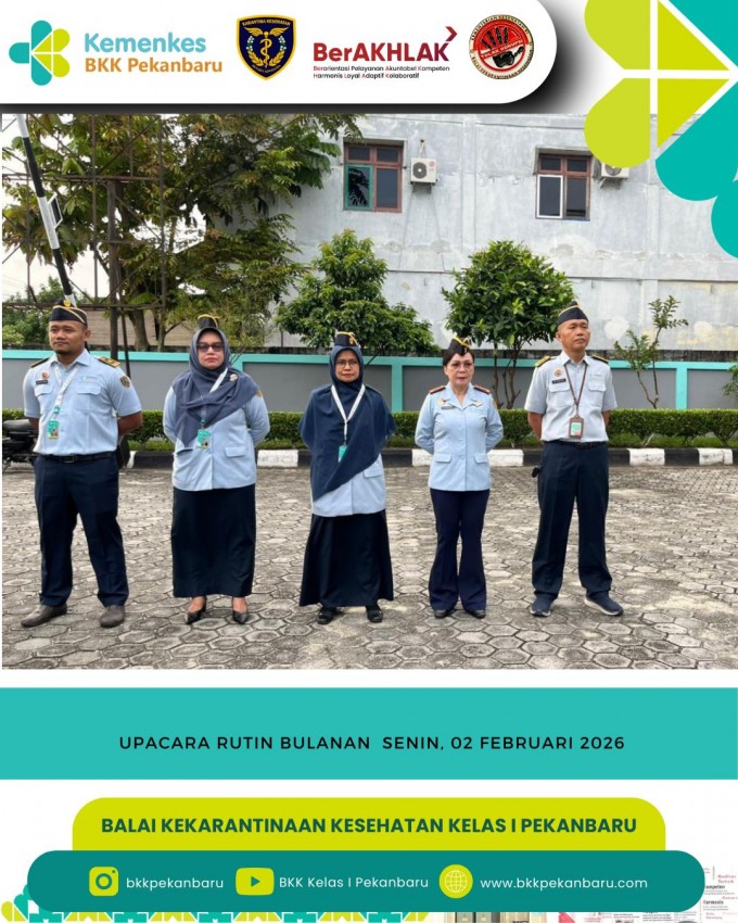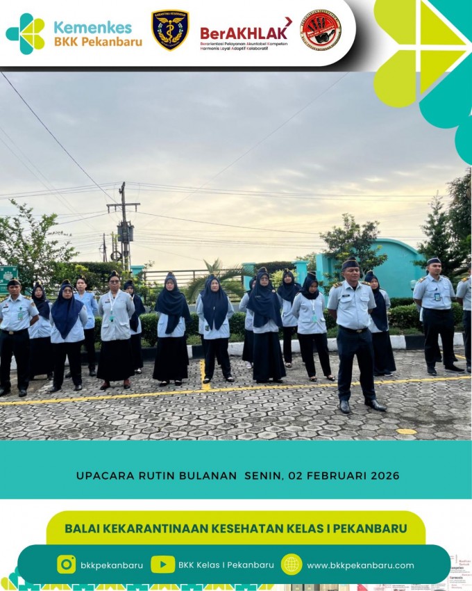 Kepala Kantor Balai Kekarantinaan Kesehatan Kelas I Pekanbaru memberikan arahan terkait implementasi penerapan KMK Nomor: HK.01.07/MENKES/898/2025 di BKK Pekanbaru
