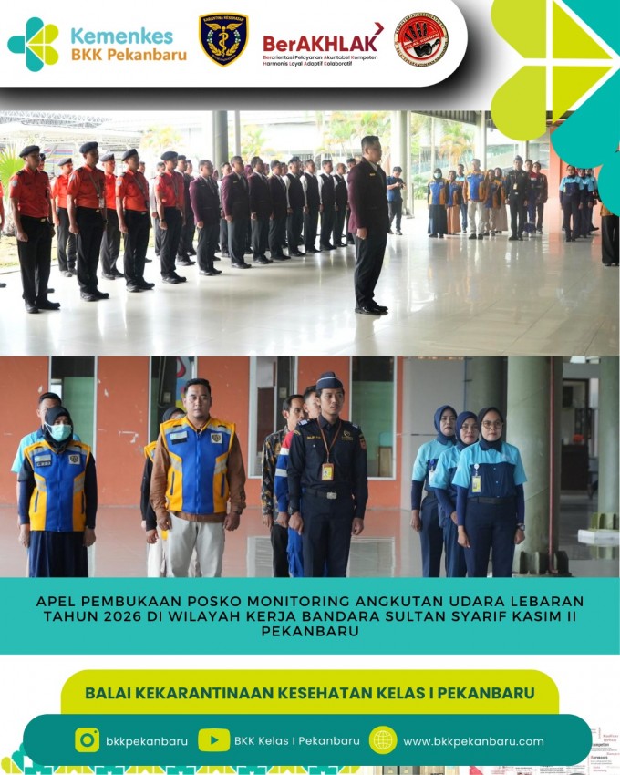 Apel Pembukaan Posko Monitoring Angkutan Udara Lebaran Tahun 2026 di wilayah kerja Bandara Sultan Syarif Kasim II Pekanbaru